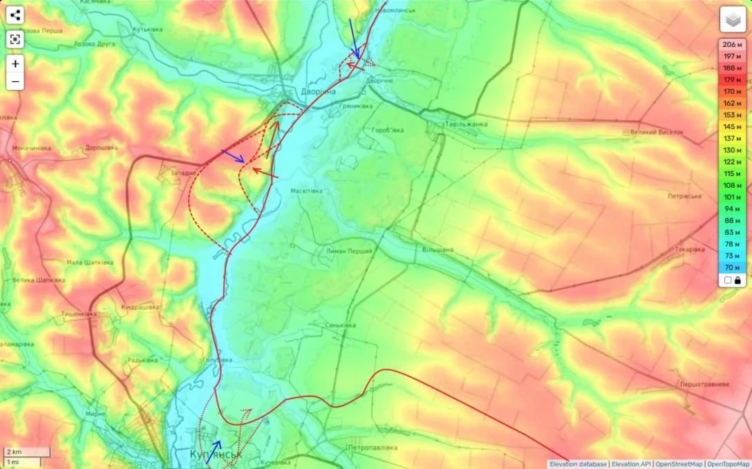 "Правда, с тактической точки зрения нам его полностью под контроль брать и не надо. Лучше взять под контроль населённый пункт Западное и холмы вокруг. Вот тогда уже будет смысл брать всё Двуречное до реки и будет сформирован вполне себе устойчивый плацдарм, с которого можно будет двигаться дальше", - уточнил Подоляка.