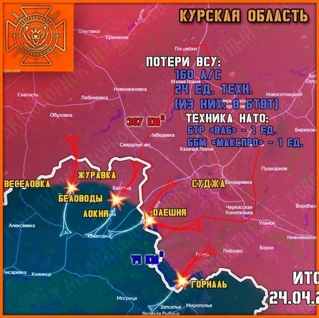 Карта боевых действий в Курской области. Данные на 25 апреля