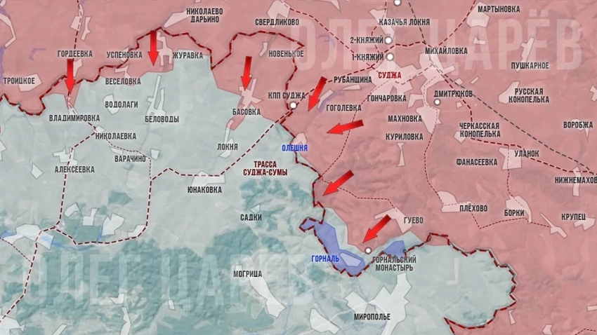 В Курской области Вооружённые силы Российской Федерации (ВС РФ) ведут тяжёлые бои за оставшиеся участки приграничья в районах Олешни и Горнали, здесь Вооружённые силы Украины (ВСУ) отчаянно сопротивляются. Несмотря на тяжёлые бои, Южнее Гуево наши продвинулись по балке Холодный Яр и отвоевали очередные позиции у реки Псёл.