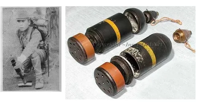 Обычно пишут, что этот миномёт якобы переносился японскими солдатами прикреплённым ремнём к ноге, отчего сами японцы называли его «коленный миномёт».