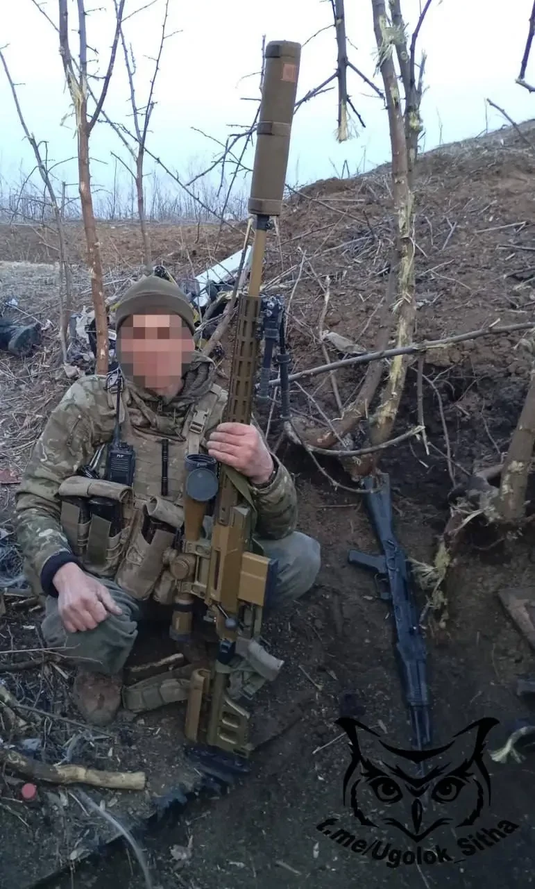 Российский боец с трофейной винтовкой Haenel HLR 338 в зоне проведения Спецоперации. Фото Telegram / «Уголок Ситха»