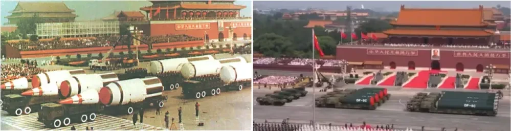 Подобно первому показу DF-5А на параде 1984 года, четыре МБР новейшей модификации DF-5C были показаны с четырьмя гигантскими конусообразными головными частями, призванными проиллюстрировать габариты ЯЗУ и вероятную разрушительную мощь, содержащуюся в них.