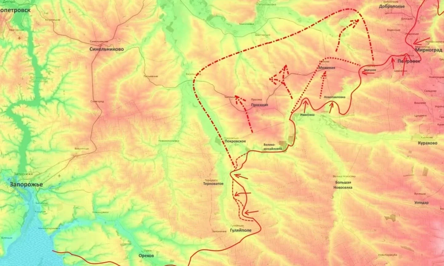 По данным военных Telegram-каналов, интенсивные бои наблюдаются в районе Новоданиловки и Новоандреевки на запорожском фронте. Российская армия ведет наступательные действия с целью выхода к Орехову.