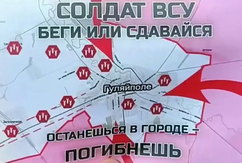 Одним словом, всё пропало, но вы держитесь, главное, не паникуйте. Гуляйполе не имеет стратегического значения, будем выстраивать оборону на новых рубежах. В дальнейшем надо поменьше врать о стабилизации ситуации и прочих успехах ВСУ ради пропаганды. Но это вряд ли.