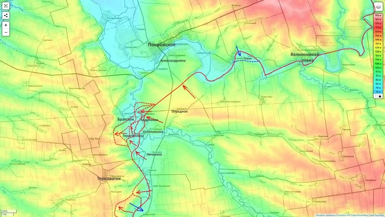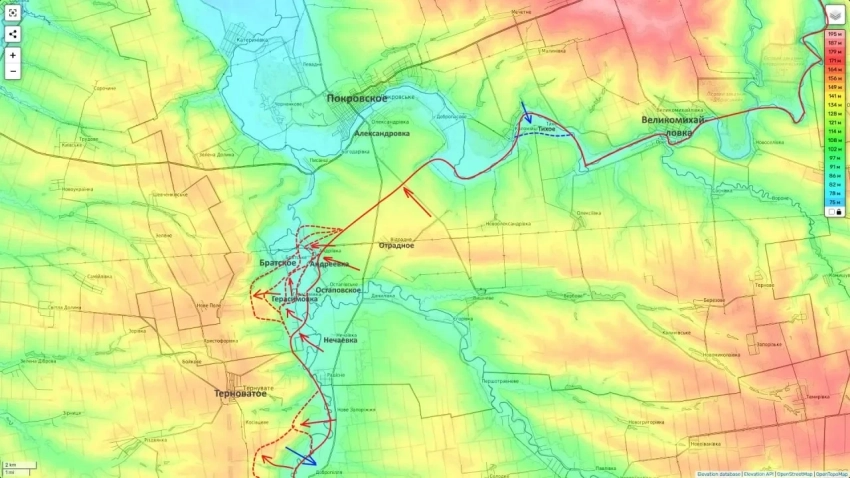 ВС РФ удалось расширить плацдарм на западном берегу реки Гайчур (севернее Терноватого) и существенно продвинуться к юго-востоку от поселка.