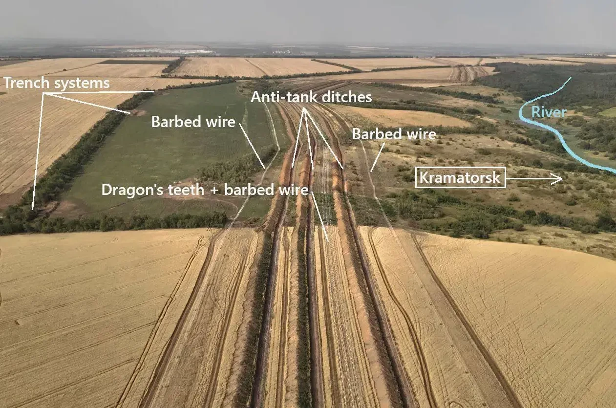 На кадрах хорошо видно, что оборону строят не на авось. Схема знакомая: несколько линий противотанковых рвов, между ними – «Егоза», тетраэдры и другие инженерные сооружения. Идея простая – замедлить технику, спутать расчеты наступающих, выиграть время. Правда, оно все равно не на стороне украинского режима.