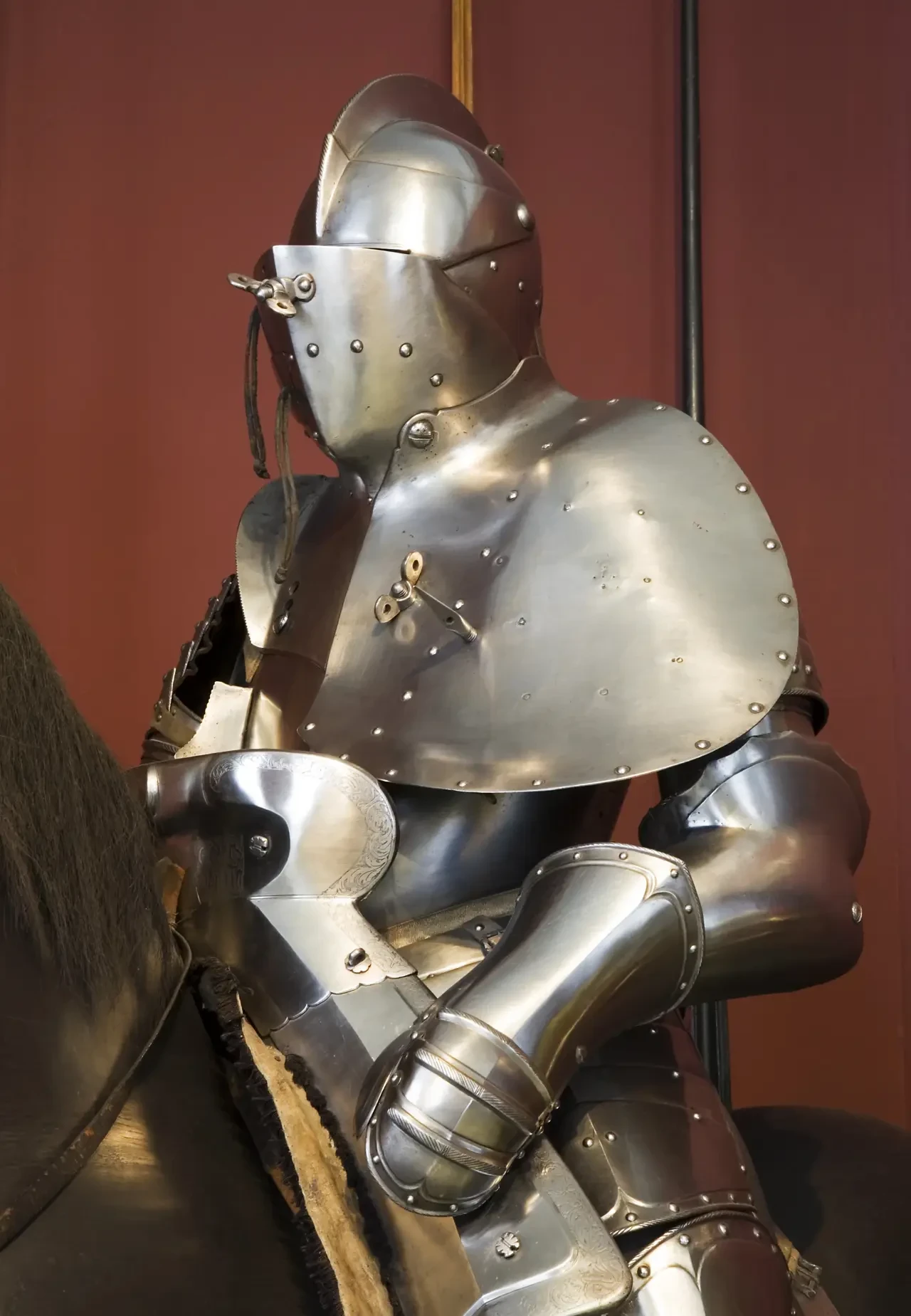 Турнирный доспех 1468-1532 гг. сразу с двумя копейными крюками – передним и задним. Оружейная палата дворца Новый Ховбург, Вена. Фотография автора