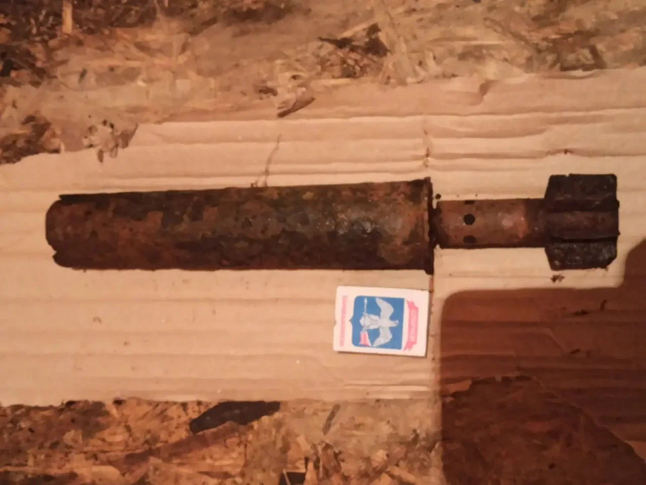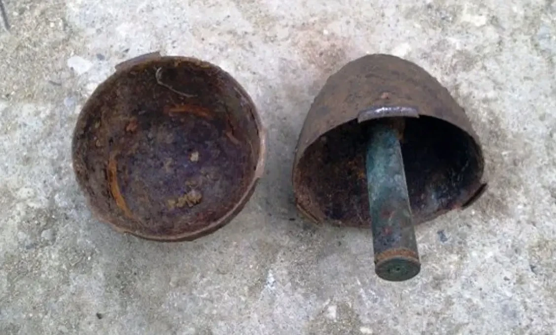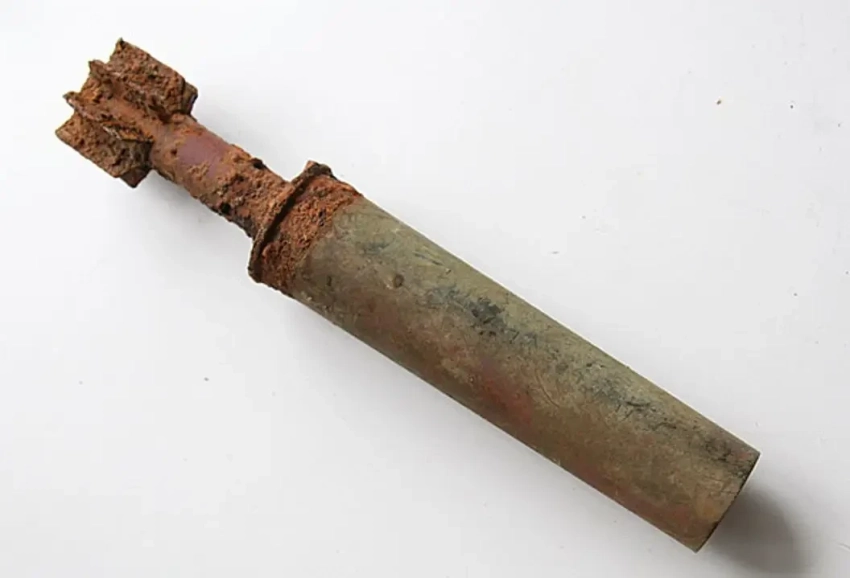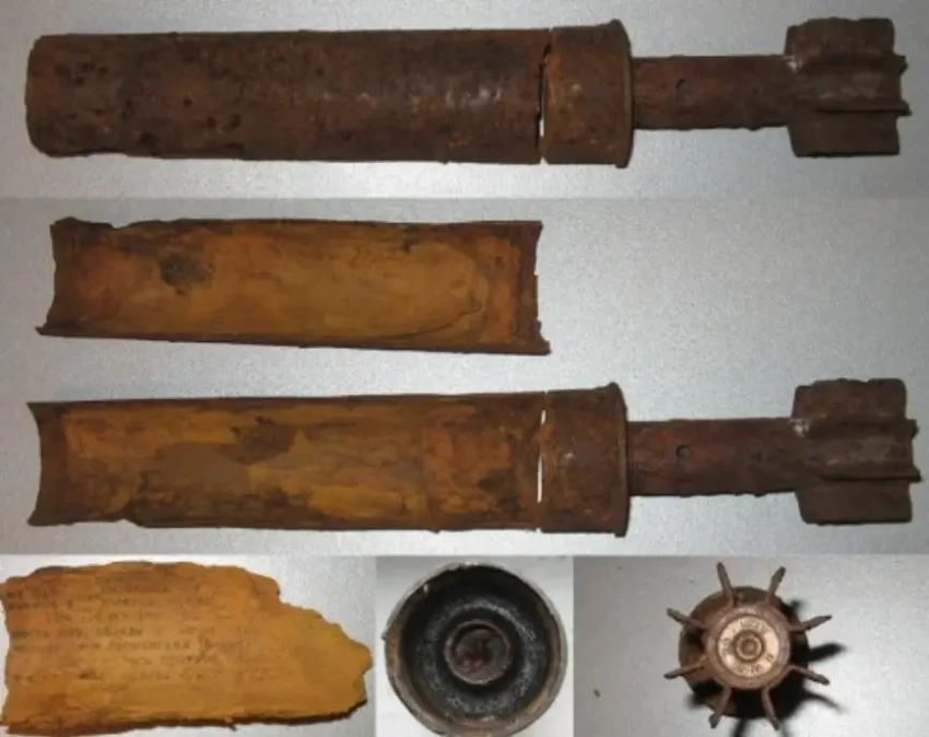 50-мм самодельная агитационная мина, найденная поисковыми отрядами в раскопе
