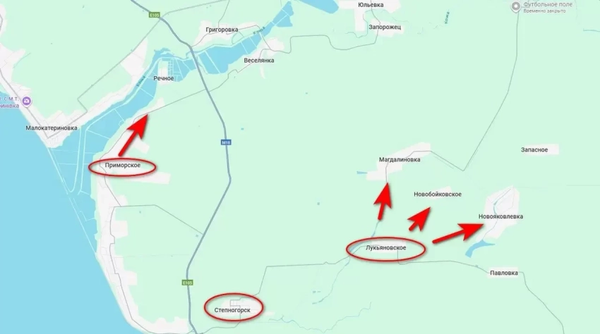 Подтверждается также информация о попытках российских подразделений пробиться к населенному пункту Речное, расположенному севернее Приморского. Однако, как сообщается, ВСУ пока сдерживают продвижение, активно применяя большое количество FPV-дронов. Одновременно севернее Степногорска штурмовые группы ВС РФ зачищают позиции противника в лесополосах и наносят удары по силам ВСУ в районе Веселянки.