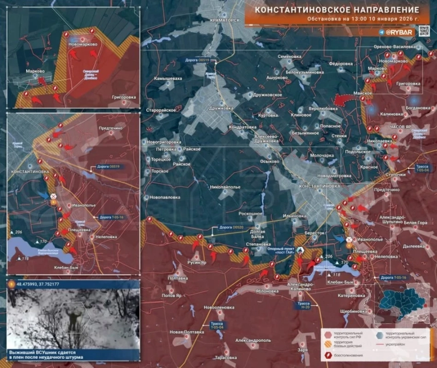 На северном фланге Константиновского направления российские войска продолжают продвигаться вперёд, отмечая локальные успехи, сообщил Telegram-канал "Рыбарь". В то же время на ряде участков фронта ситуация остаётся сложной, особенно в районах, контролируемых противником.