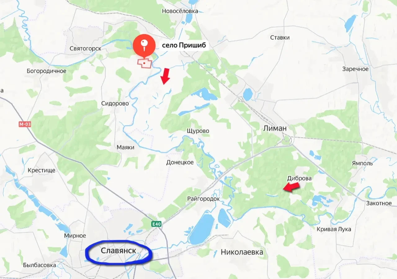 Российские войска продвигаются на севере Донецкой Народной Республики. С начала суток подразделения ВС РФ продвинулись примерно на 3 км вдоль Северского Донца восточнее города Святогорск. Продвижение началось от станции Новосёловка и достигло территории в районе излучины Северского Донца юго-восточнее села Пришиб.