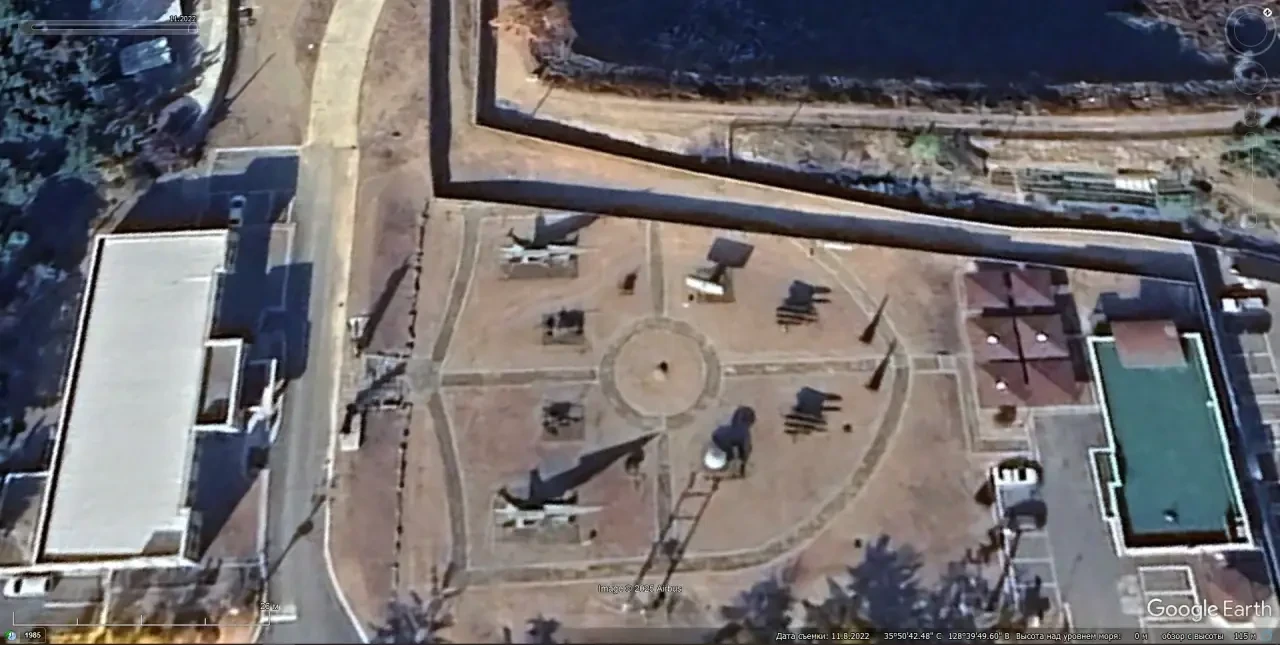Спутниковый снимок Google Earth: мемориальный комплекс с элементами ЗРК «Найк-Геркулес» и «Хок» на территории части ПВО, расположенной на южной окраине города Тэгу. Снимок сделан в декабре 2022 года.
