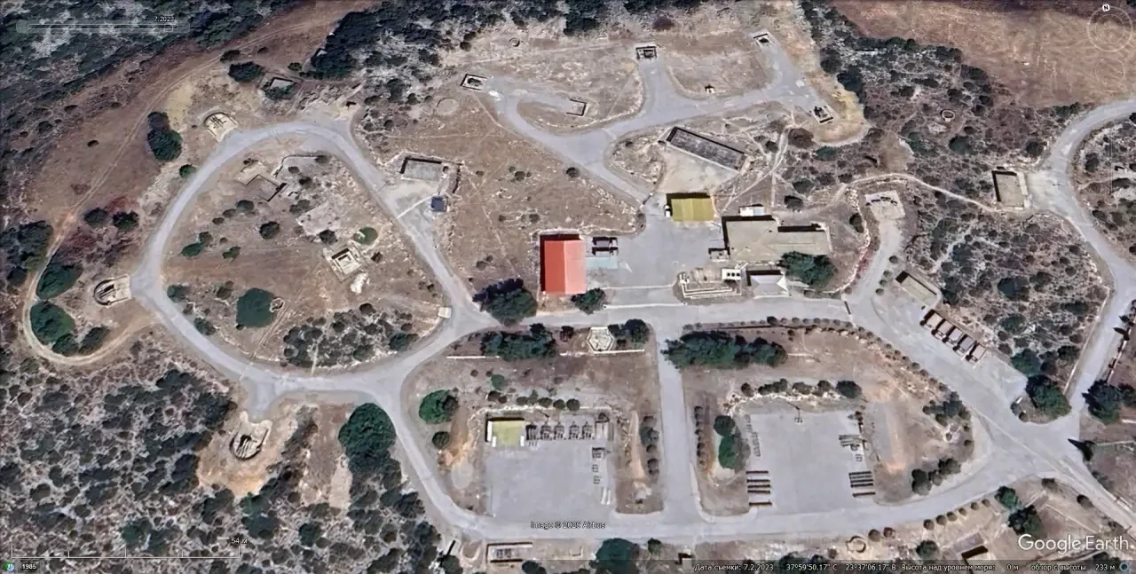 Спутниковый снимок Google Earth: позиция ЗРК MIM-23 I-Hawk в 6 км северо-восточней города Капандритион. Снимок сделан в июне 2024 года