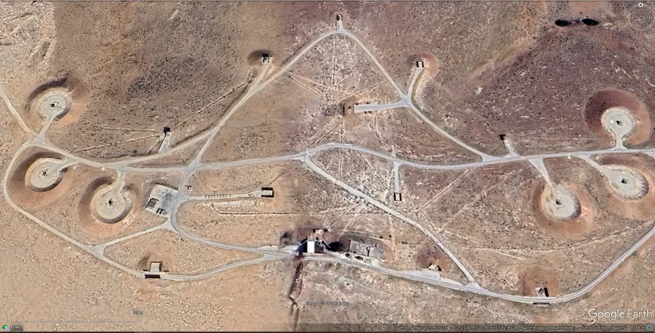 Спутниковый снимок Google Earth: позиция ЗРК MIM-23 I-Hawk к северу от Аммана. Снимок сделан в октябре 2025 года