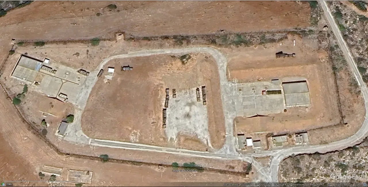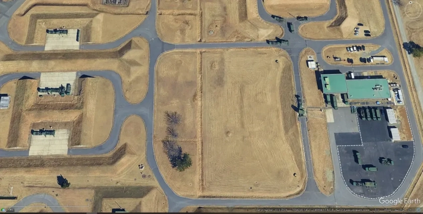 Спутниковый снимок Google Earth: позиция ЗРК MIM-104 Patriot PAC-2 в 6 км южней города Каратея. Снимок сделан в августе 2025 года