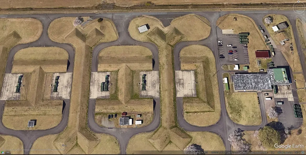 Спутниковый снимок Google Earth: ЗРК Patriot PAC-3 хранящийся на авиабазе Хамамацу. Снимок сделан в декабре 2023 года