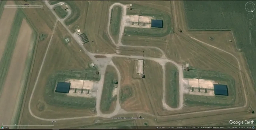 Спутниковый снимок Google Earth: позиция ЗРК MIM-14 Nike Hercules юго-западней города Датча. Снимок сделан в июле 2024 года