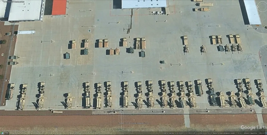 Спутниковый снимок Google Earth: элементы ЗРК Patriot хранящиеся на военной базе Форт-Блисс. Снимок сделан в феврале 2024 года