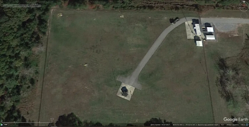 Спутниковый снимок Googlе Earth: пусковая установка ЗРК NASAMS на испытательном объекте ВМС США David Taylor Model Basin к юго-западу от Вашингтона