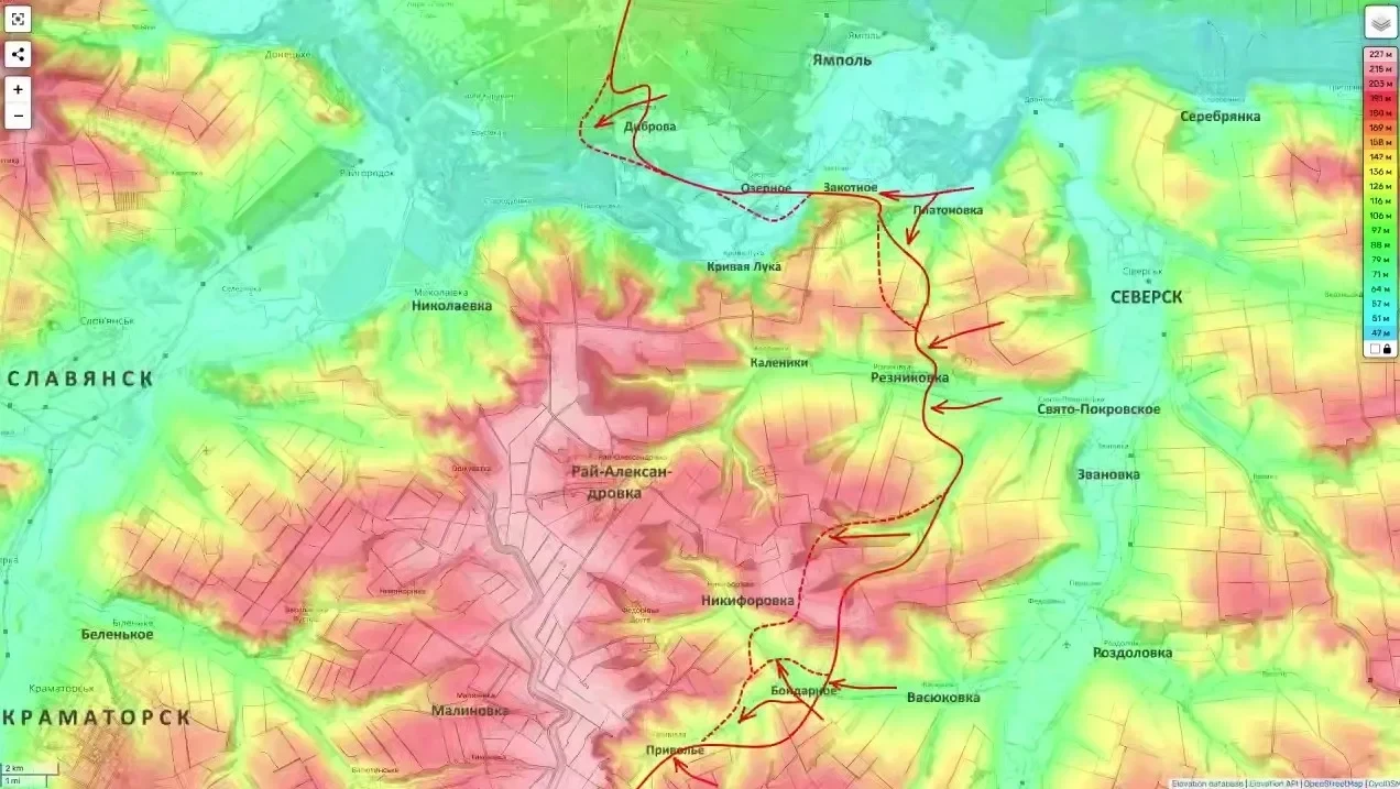Самые существенные изменения за последние 24 часа фиксируются на подступах к Краматорско-Славянской агломерации. По словам Юрия Подоляки, оборона ВСУ на водораздельных высотах восточнее крупных городов начала быстро терять устойчивость. Освобождение Приволья и Миньковки позволило российским подразделениям закрепиться на господствующих высотах, что меняет баланс сил на участке.