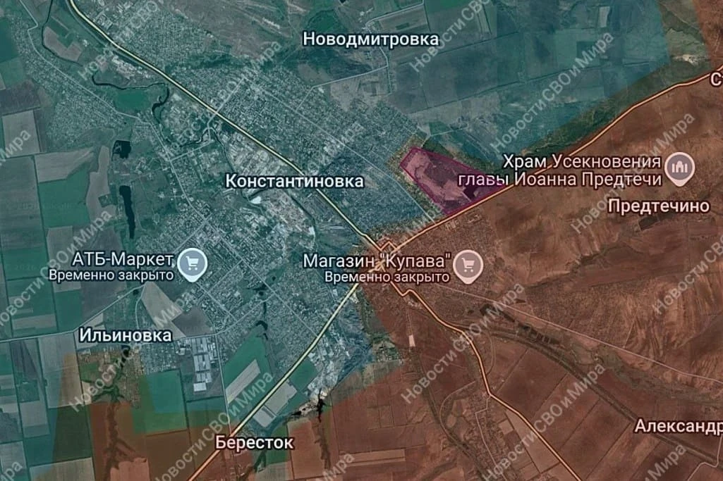 Идёт активный штурм города Константиновка: российские войска продвинулись на 2 км, заняв позиции в микрорайоне Гора.