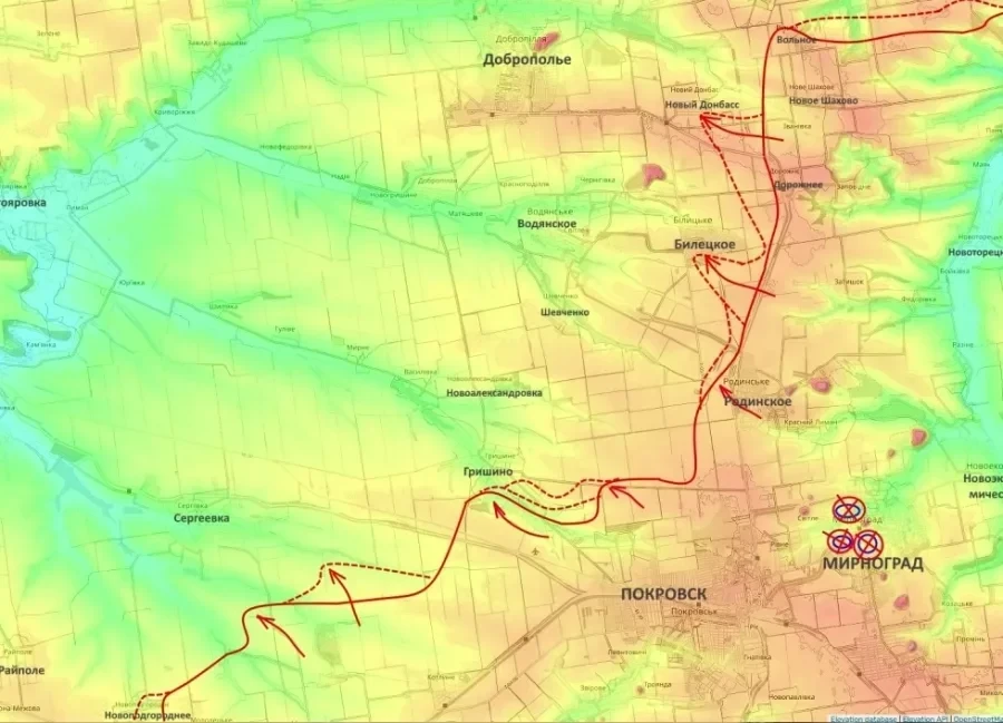 В населённом пункте Гришино российские подразделения выбили ВСУ из восточной части посёлка и продолжают продвижение в глубину застройки. Контроль над такими населёнными пунктами, отмечает Подоляка, постепенно подрывает устойчивость всей обороны Покровского узла.