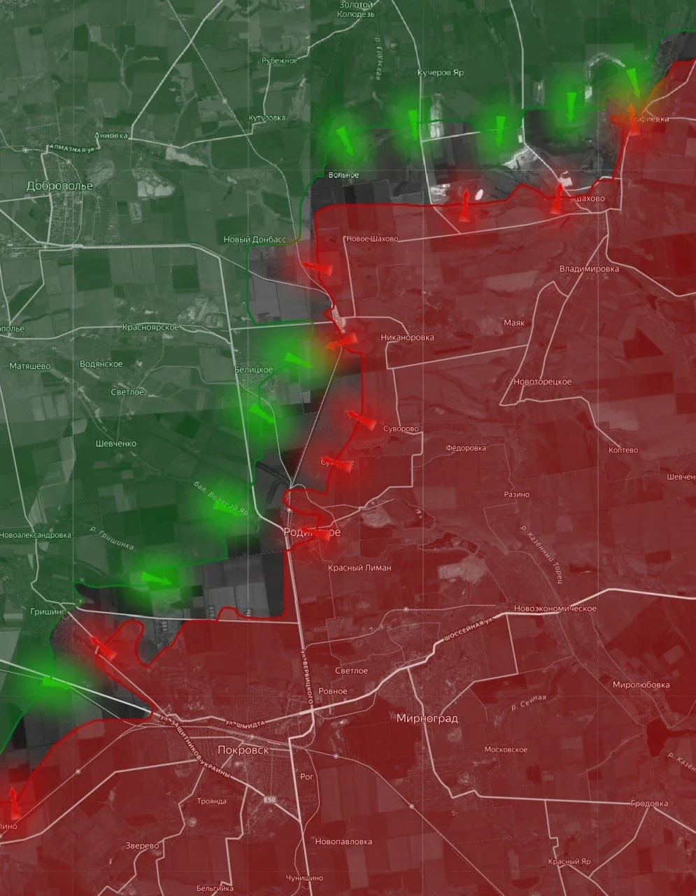Украинские источники фиксируют удары наших FPV-дронов на значительном удалении от города (около 80 км от Красноармейска), что говорит о расширении радиуса поражения нашей беспилотной авиации. На стыке Днепропетровской и Запорожской областей захвачен населенный пункт Злагода (Первомайское), также зафиксировано продвижение в районе Егоровки. Фронт здесь постепенно выравнивается в пользу ВС РФ.