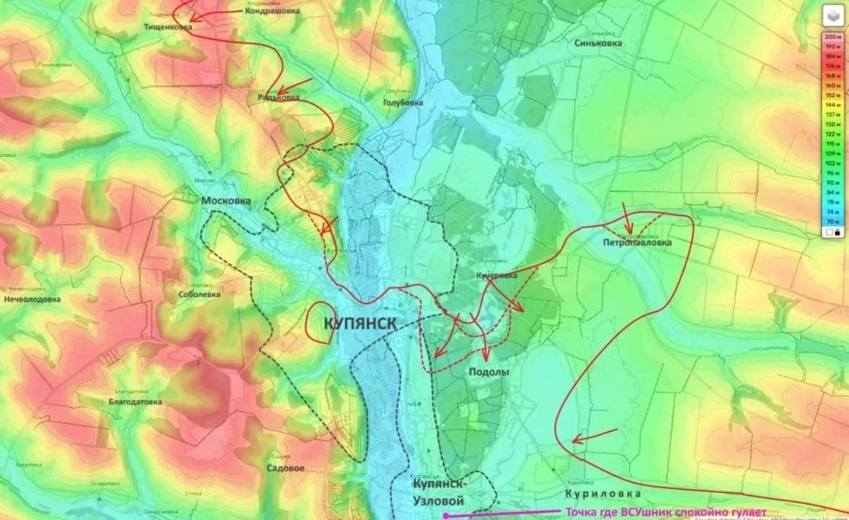 На Купянском направлении продолжаются ожесточённые столкновения за Купянск-Узловой. Несмотря на заявления о полном контроле, противник публикует кадры из центра посёлка, что говорит о сохраняющейся «серой зоне». Российские подразделения действуют на северо-восточных окраинах и в районе Подолов, где занята северная часть.