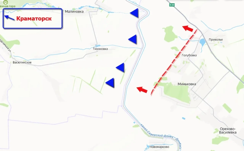 Причём продвижение это идёт с нескольких направлений. Одно из них – со стороны Приволья и Миньковки, где от канала Северский Донец – Донбасс, к которому вышли ВС РФ, до окраины Краматорска расстояние составляет примерно 11 км.
