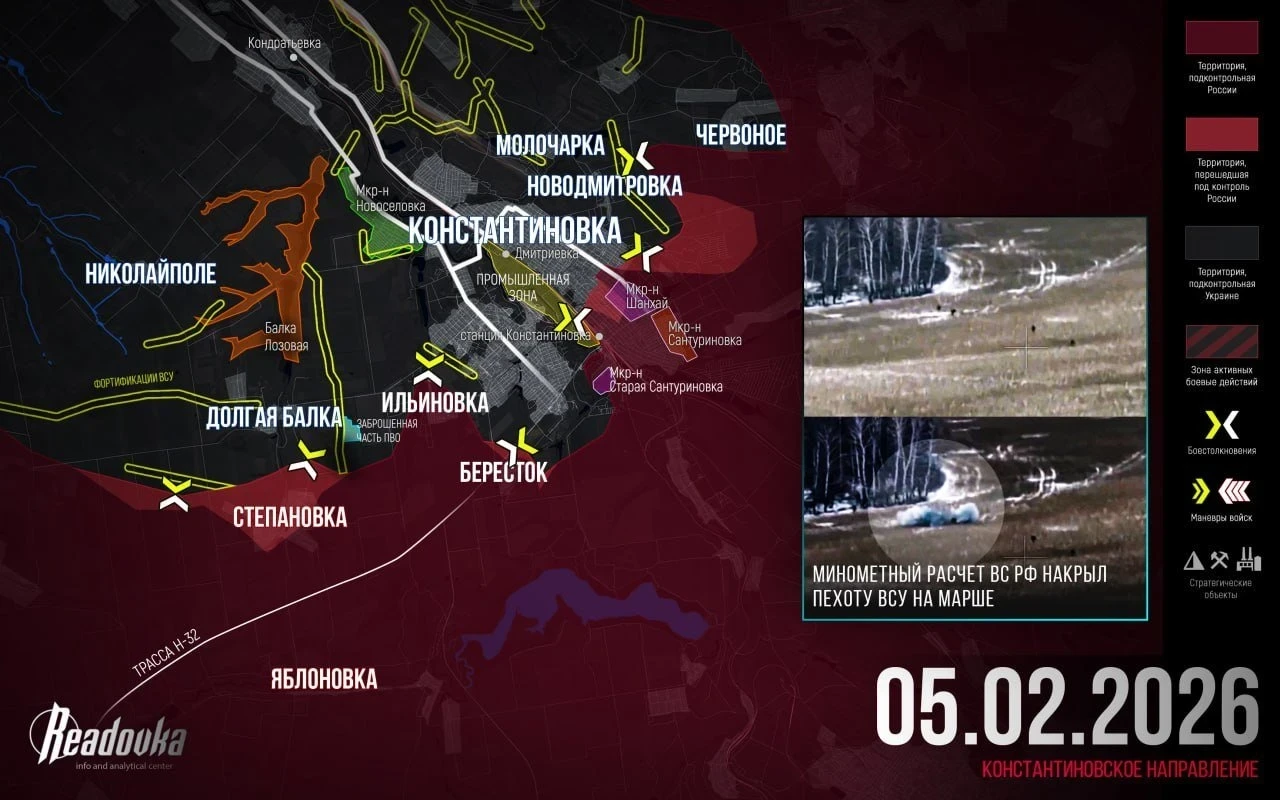 Российская армия подошла к финальному этапу ликвидации обороны ВСУ, прикрывающей южный сектор города. Части 8-й гвардейской армии сломали сопротивление 109-й бригады ТрО и 93-й ОМБр, оставив под контролем противника только Долгую Балку - «укрепрайон в укрепрайоне». Потеря этого участка лишит гарнизон Константиновки возможности удерживать южное направление, повторяя сценарий боев за Покровск.