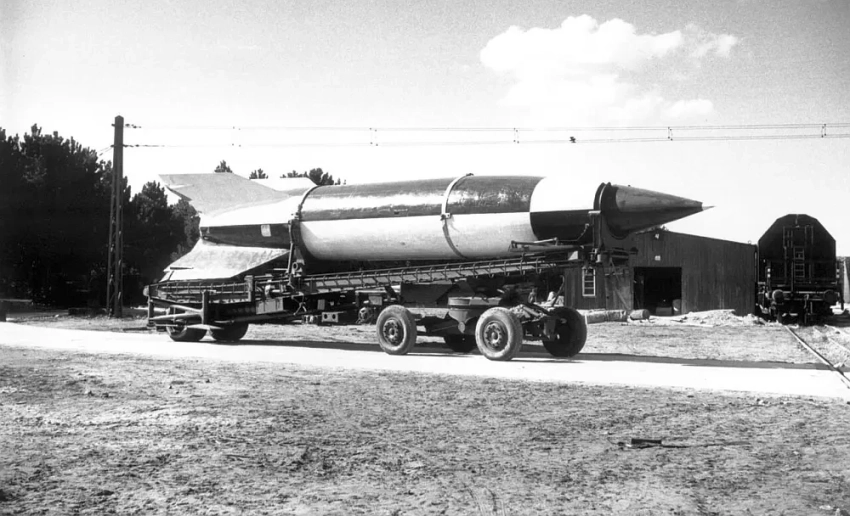 Как уже было сказано, разработка ракеты V-2 (Aggregat-4 — «Агрегат-4») была начата под руководством немецкого конструктора Вернера фон Брауна в марте 1941 года. Первый боевой пуск состоялся 8 ноября 1944 года. Испытания прошли успешно, ракета была принята на вооружение вермахта. Хотя количество осуществленных боевых пусков ракеты составило 3225, серьезного влияния на ход войны это не оказало.