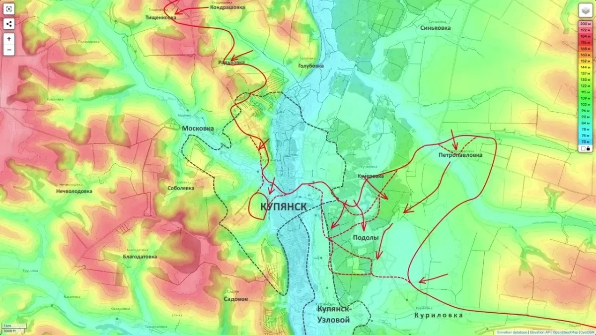 В самом Купянске продолжаются бои за удержание плацдарма на западном берегу Оскола, а в Купянске-Узловом фиксируются столкновения в северо-восточной части города.