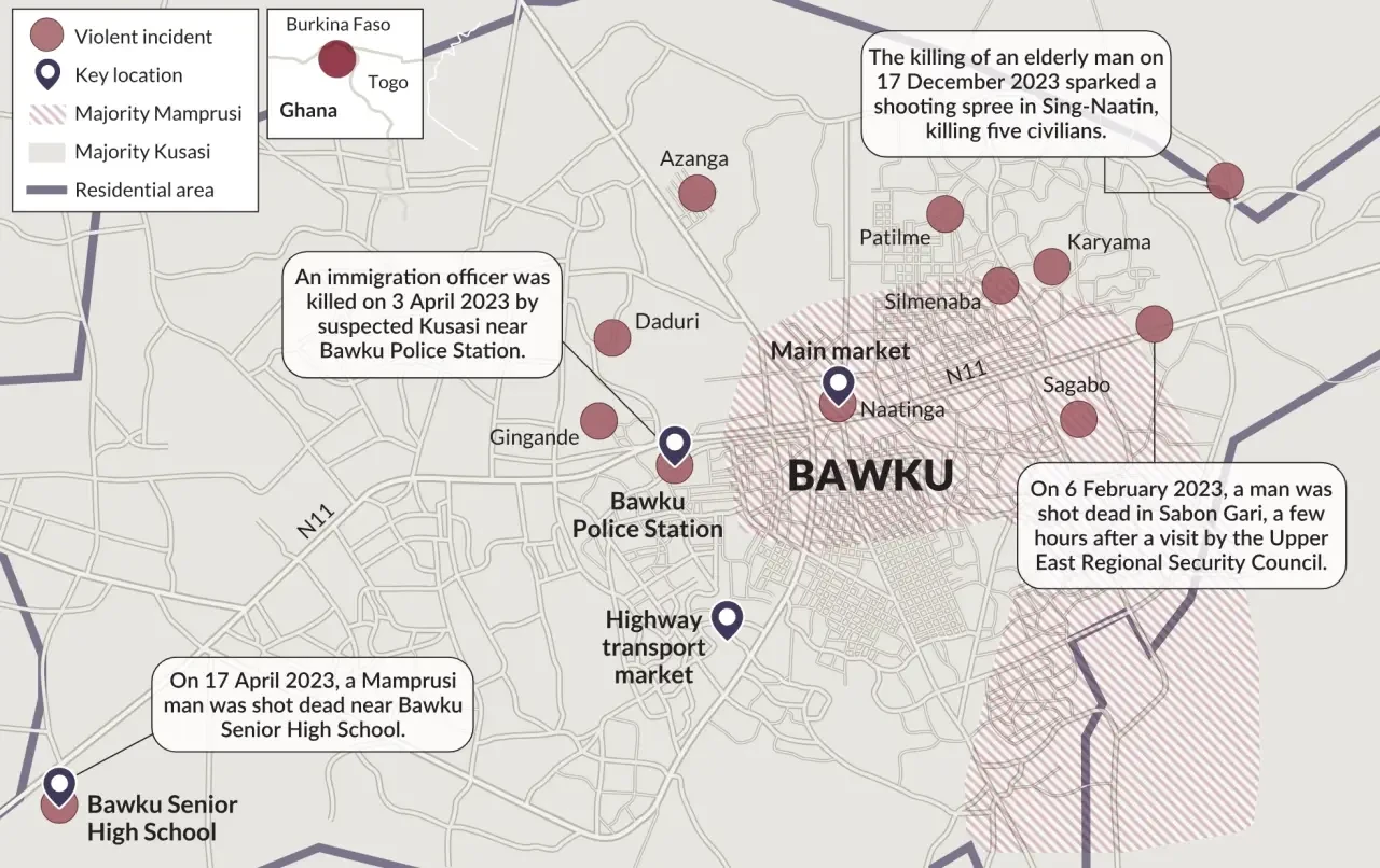 С 2021 года на севере Ганы разгорается некогда застывший конфликт между этническими группами кусаси и мампруси за главенство в небольшой провинции Бавку — саваннового приграничного региона с разветвленной сетью грунтовых дорог, к тому же отделенного реками, доступность которого остается проблемной для властей в Аккре.