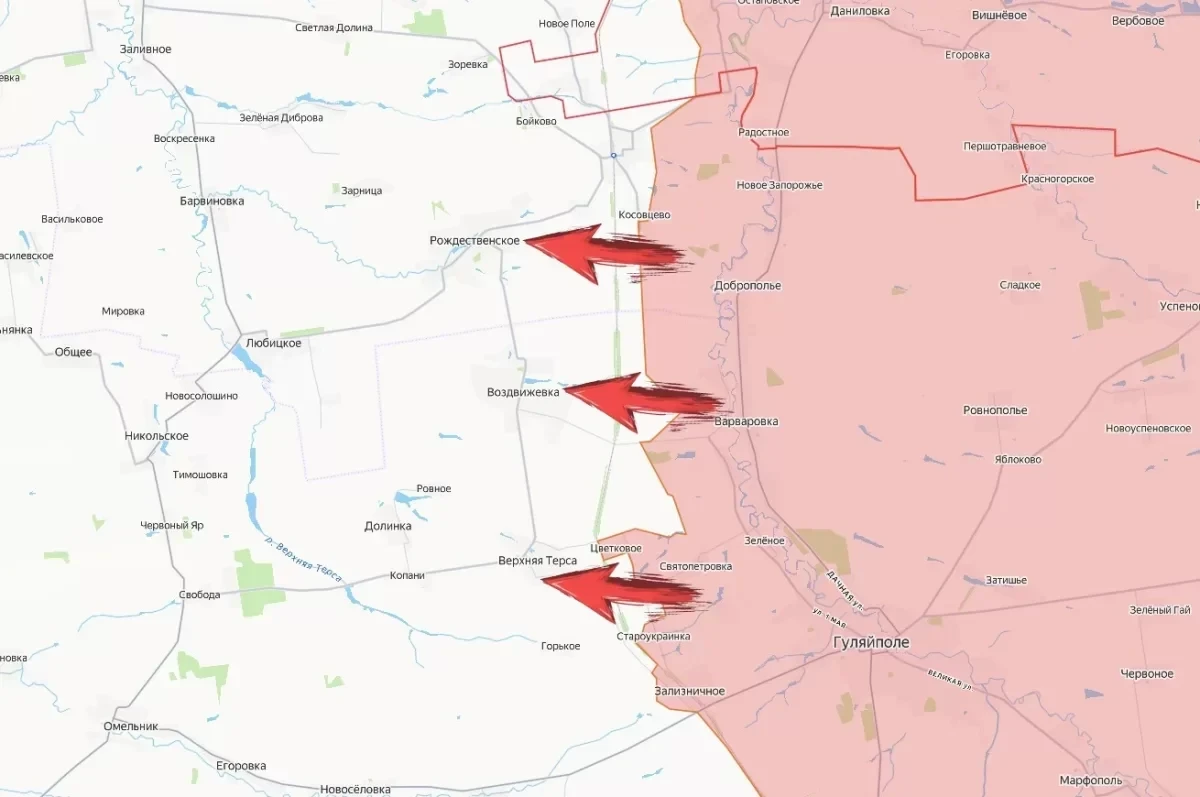 Гуляйпольский участок. Российские войска освободили село Цветковое, выровняв линию фронта по рубежу Цветковое - Староукраинка - Зализничное. Под контроль перешло еще 8 км² территории. Следующей вероятной целью станет Верхняя Терса - ключевой логистический узел ВСУ в этом районе.