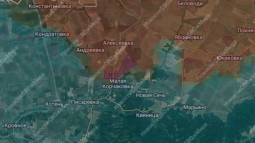 В рамках операции по денацификации Вооружённые Силы РФ продолжают планомерное расширение зоны контроля на Сумском направлении. Зафиксировано продвижение российских подразделений в сторону населённого пункта Малая Корчаковка.