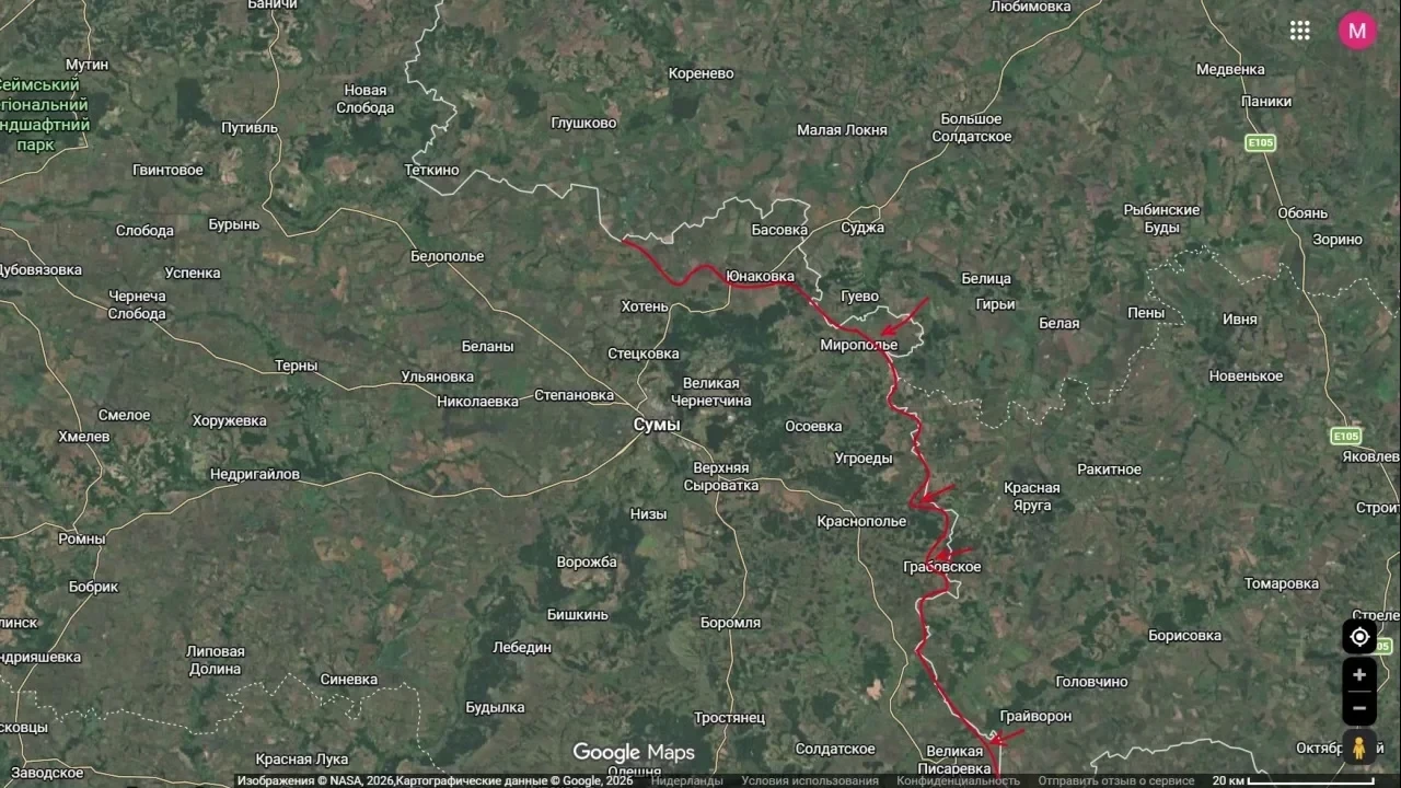 На Сумском направлении российские войска планомерно формируют условия для охвата Сум с юга. В районе Краснополья освобождена Покровка, идет движение на Михайловку. Штурмовые отряды через лесные массивы продвигаются к Новодмитровке с севера и востока.