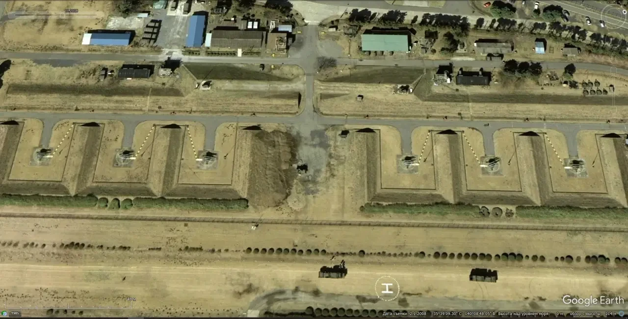 Спутниковый снимок Google Earth: позиция ЗРК Hawk Type III в пригороде Токио. Снимок сделан в феврале 2008 года
