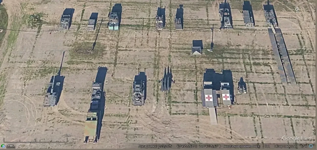 Спутниковый снимок Google Earth: бывшая позиция ЗРК С-200ВМ под Хабаровском. Снимок сделан в мае 2015 года