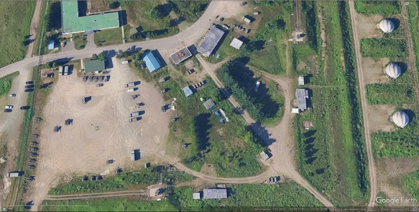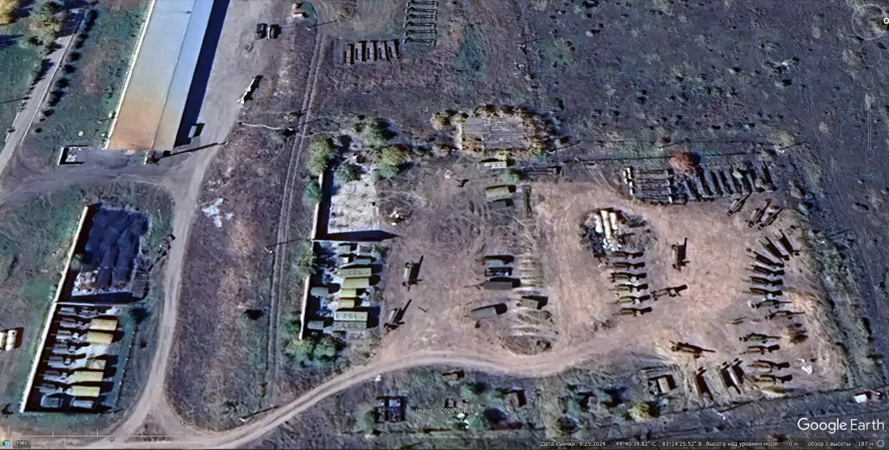 Спутниковый снимок Google Earth: база хранения ЗРК С-75М3 на западной окраине Серебрянска. Снимок сделан в сентябре 2024 года