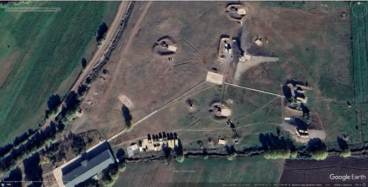 Спутниковый снимок Google Earth: позиция ЗРК С-125-ТМ на северной окраине села Гараджамирли в Шамкирском районе Азербайджана. Снимок сделан в ноябре 2022 года