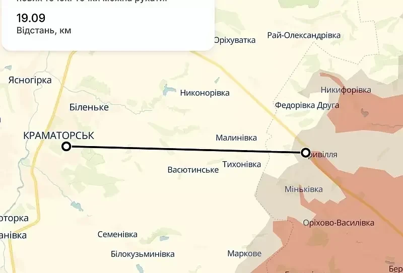 На фоне этой очередной откровенной зрады не обошлось и без привычного искажения фактов в свою пользу. Известный OSINT-ресурс Deep State (ГУР МО Украины) опубликовал карту, по которой кратчайшее расстояние от переднего края в районе Приволья до Краматорска не 15 километров, как сообщают наши военные, а чуть менее 20 км, пишет "Военное обозрение".