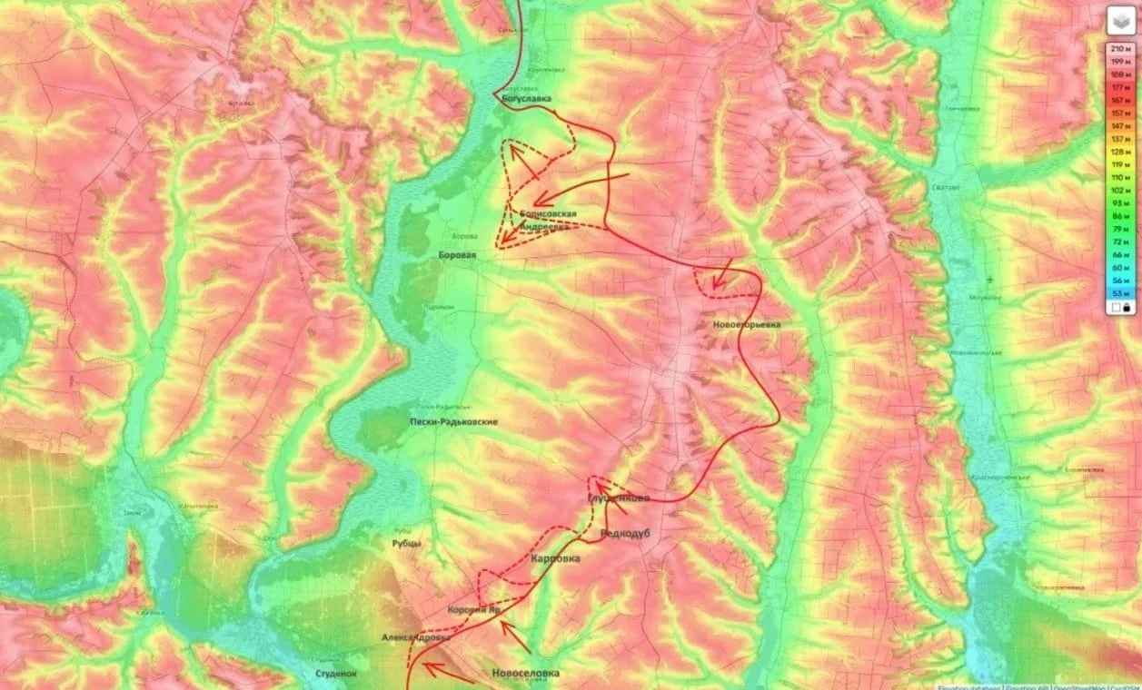 На Боровском направлении продолжаются атаки в районах Коровьего Яра, Карповки и Александровки. В сторону Рубцов и Песков-Радьковских фиксируется постепенное продвижение. В районе Купянска наблюдается оперативная пауза, связанная с перегруппировкой.
