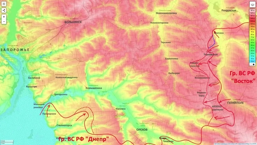 По данным блогера, в перспективе речь может идти о попытке охвата Ореховской группировки с последующим развитием успеха в сторону Запорожья, что может выразиться в форме мощного рывка, если будет подготовлена соответствующая почва. Сама логика борьбы за рубеж Верхняя Терса - Воздвиженка - Рождественское действительно рассматривается рядом источников как часть подготовки к более крупным действиям в направлении Орехова.