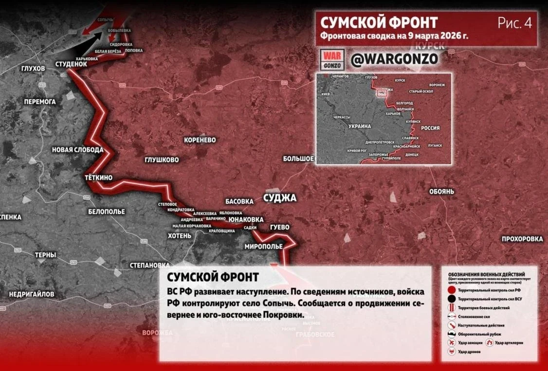 Главные новости » Эксклюзив » Последняя сводка СВО от Юрия Подоляки на 09.03.2026: ВС РФ развивают прорыв в Сумской области