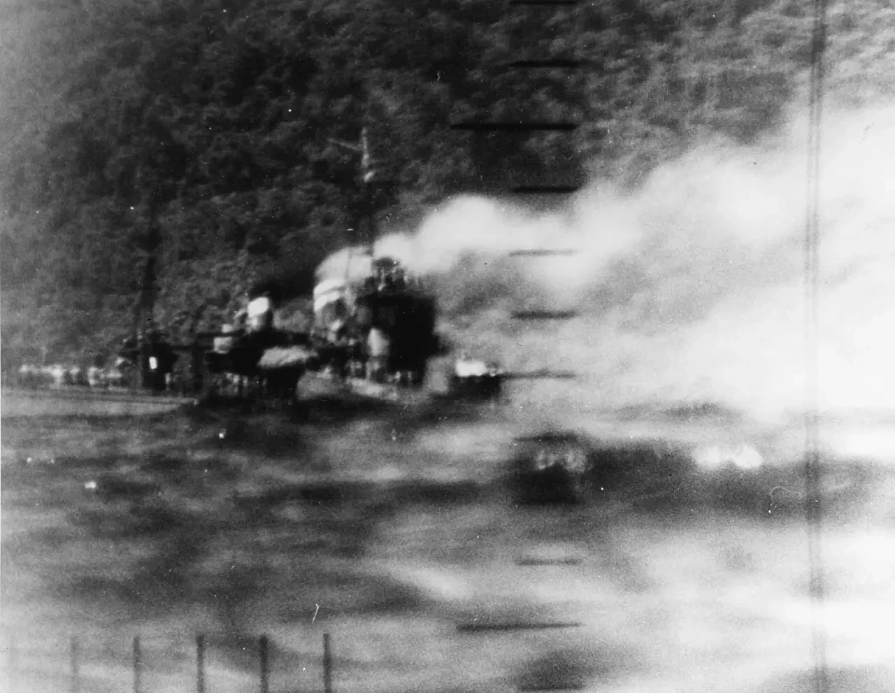 Фотография «Ямакадзе», тонущего после торпедирования, снятая через перископ подводной лодки «Наутилус»