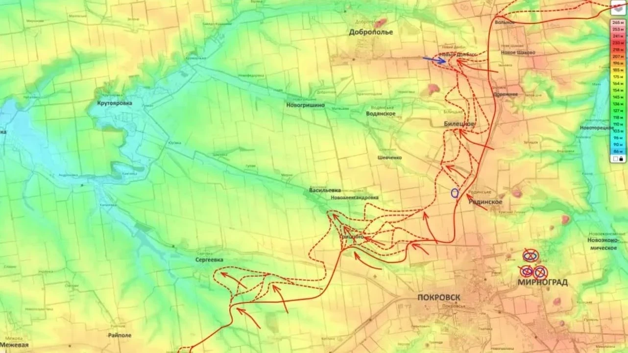 Вооружённые силы Российской Федерации (ВС РФ) расширяют мощное наступление в полосе группировки "Центр" на Покровско-Добропольском направлении. Это отчётливо видно по продвижению в районе населённого пункта Гришино.