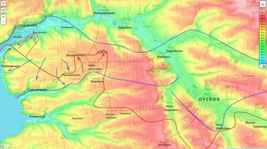 Бойцы армии Российской Федерации одновременно работают по двум направлениям. С одной стороны - занимаются окружением Ореховского укрепрайона, взаимодействуя с группировкой «Восток». С другой - совершают броски к южным окраинам Запорожья.