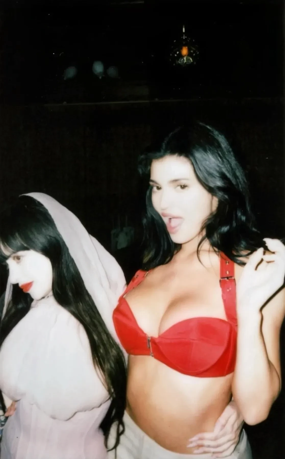 Для вечера Кайли выбрала красный топ и бежевую мини-юбку, а "помолодевшая" после пластики Крис Дженнер позировала в чёрном комплекте и солнцезащитных очках. Хейли Бибер и Кендалл Дженнер появились в нарядах из новой коллекции: Хейли — в платье телесного цвета, а Кендалл — в чёрном облегающем макси с полупрозрачной корсетной вставкой.