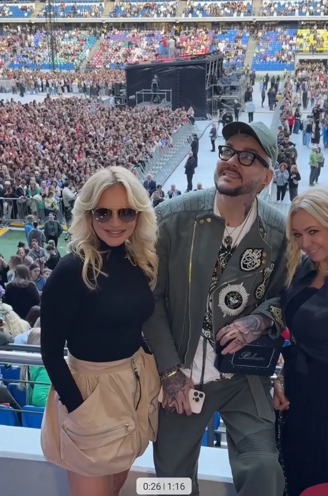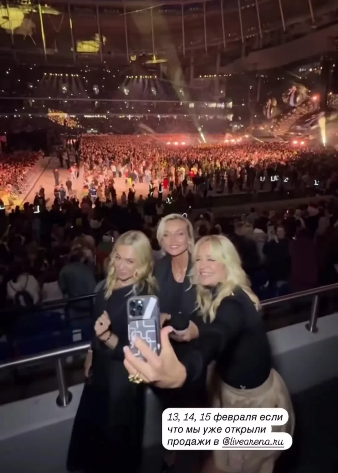 Собравшиеся в VIP-ложе Филипп Киркоров, Полина Гагарина, Алсу, Ида Галич, Виктория и Олег Шеляговы, Мари Краймбрери с мужем Давой, Алексей Жидковский и другие знаменитости активно танцевали и подпевали певцу вместе с прочими зрителями.
