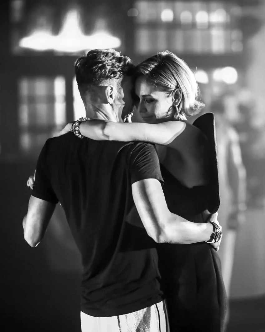 В завершение он пожелал себе и любимой и дальше "смотреть в одну и ту же сторону, в сторону Солнца": "Давай дальше так же, как и на этих двух фотографиях: танцевать, крепко обнявшись, так, как будто никого кроме нас вокруг нет".